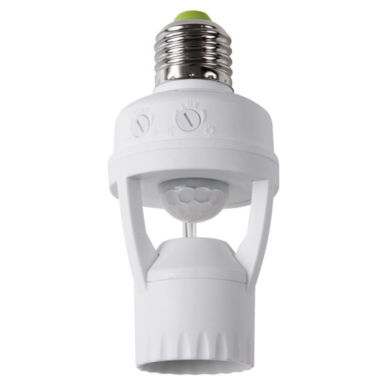 Датчики предназначены для автоматического включения и выключения нагрузки в заданном интервале времени, в зависимости от наличия движущихся объектов в зоне обнаружения датчика и уровня освещенности. Принцип работы инфракрасных датчиков движения заключается в обнаружении изменений инфракрасного (теплового) излучения окружающих объектов. Каждый объект, имеющий температуру, испускает инфракрасное излучение, которое через систему линз или специальных вогнутых сегментированных зеркал попадает на расположенный внутри датчика движения чувствительный сенсор, регистрирующий это. Датчик движения в патрон E27 обладает возможностью определять движение на 360 градусов. Лампа в патроне будет включаться, с какой стороны вы бы не зашли в помещение.