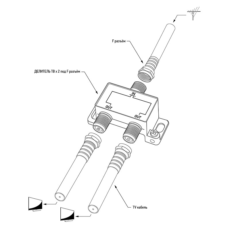 - Комплектация: делитель телевизионный|упаковка