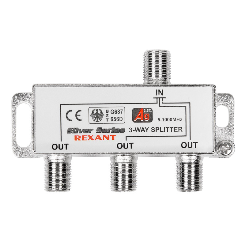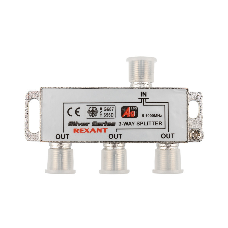 Полное описание товара Делитель ТВ х 3 + 4шт. F BOX 5-1000 МГц Silver, (REXANT) 05-6102