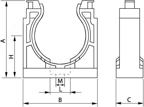 Держатель для труб. Номинальный диаметр: 17 мм. Материал - полиамид (PA6.6). Цвет: черный. Температура эксплуатации от -40 до +105 градусов по Цельсию (кратковременное воздействие до +150 градусов по Цельсию). Не содержит галогенов. Используется для крепления гофрированных полиамидных труб к корпусам оборудования, поверхности стен, потолков и перегородок.