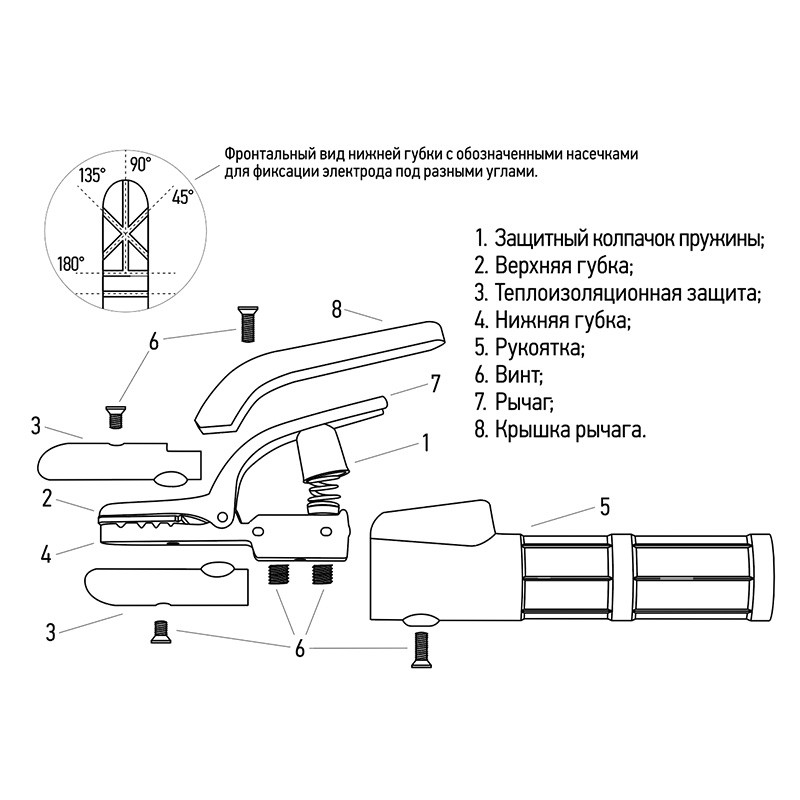 - Преимущества: Гарантирует жесткую фиксацию широкого диапазона электродов|Предусмотрено 4 положения электрода благодаря рельефу зажима|Удобная ручка надежно изолирована пластиковым материалом|Устойчив к высоким механическим и техническим нагрузкам