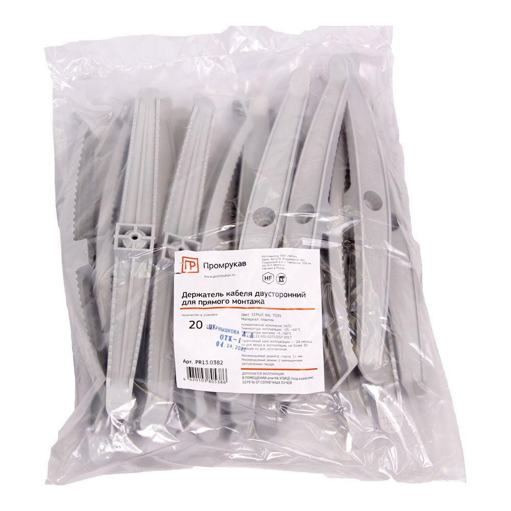 Держатель кабеля двусторонний для прямого монтажа серый (20шт/120шт уп/кор) (Промрукав) PR13.0382