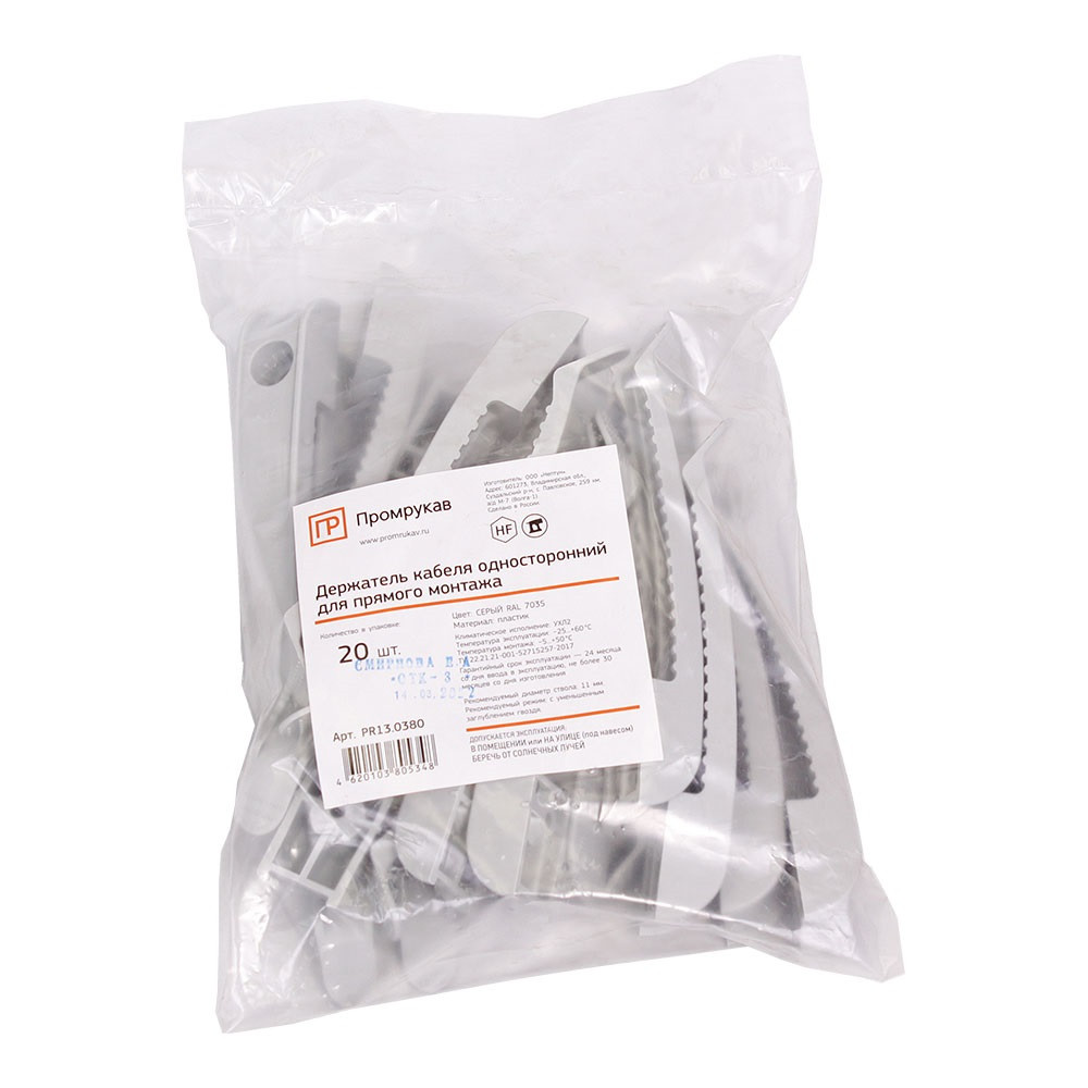 Полное описание товара Держатель кабеля односторонний для прямого монтажа серый (20шт/240шт уп/кор) (Промрукав) PR13.0380