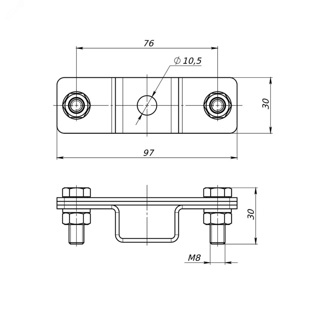 Двухболтовой держатель предназначен для крепления и параллельного соединения плоских проводников 25-50 мм. Способ крепления проводника - болтовой зажим. Материал - горячеоцинкованная сталь.