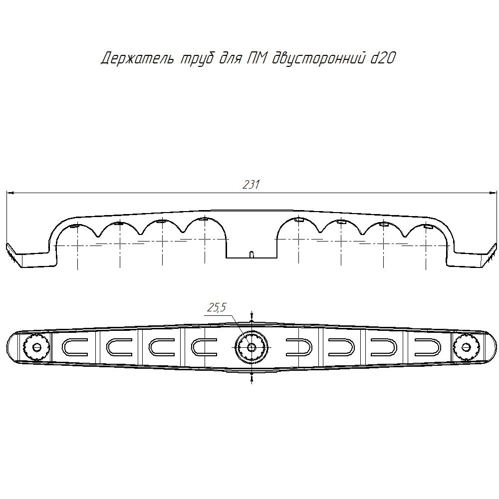 Держатель труб для прямого монтажа двусторонний на 8 мест d20 Промрукав - это специализированный крепеж, предназначенный для крепления гофрированных и гладких пластиковых труб диаметром 20 мм. Держатель труб разработан для прямого монтажа, что позволяет осуществлять крепление монтажными пистолетами по бетонным поверхностям, но возможен монтаж и классическим способом, используя дюбели и саморезы. С помощью двустороннего держателя труб можно одновременно смонтировать и закрепить до 8 труб. Данную продукцию можно использовать при прокладке линии внутри помещений или под навесом. При необходимости допускается фиксировать края держателя, в том числе монтажным пистолетом, для обеспечения максимально возможной надежности фиксации трубы.