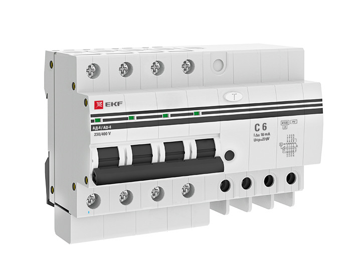 Дифференциальный автоматический выключатель АД-2(4) (S) EKF PROxima представляет собой аппарат, сочетающий функции автоматического выключателя с устройством защитного отключения. При обнаружении автоматическим выключателем в защищаемом участке сети тока утечки (повреждения) на землю или сверхтока (тока перегрузки или короткого замыкания) происходит срабатывание устройства, приводящее к отключению защищаемой сети. Особое отличие дифференциальных автоматов EKF – в наличии встроенного блока защиты от перенапряжения. АД-2 и АД-4 EKF PROxima выпускаются в стандартном и селективном (АД-2S, АД-4S) исполнениях.
