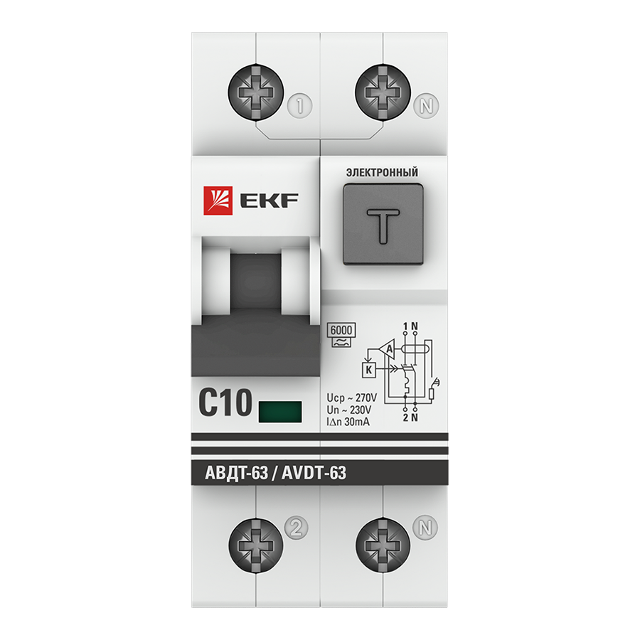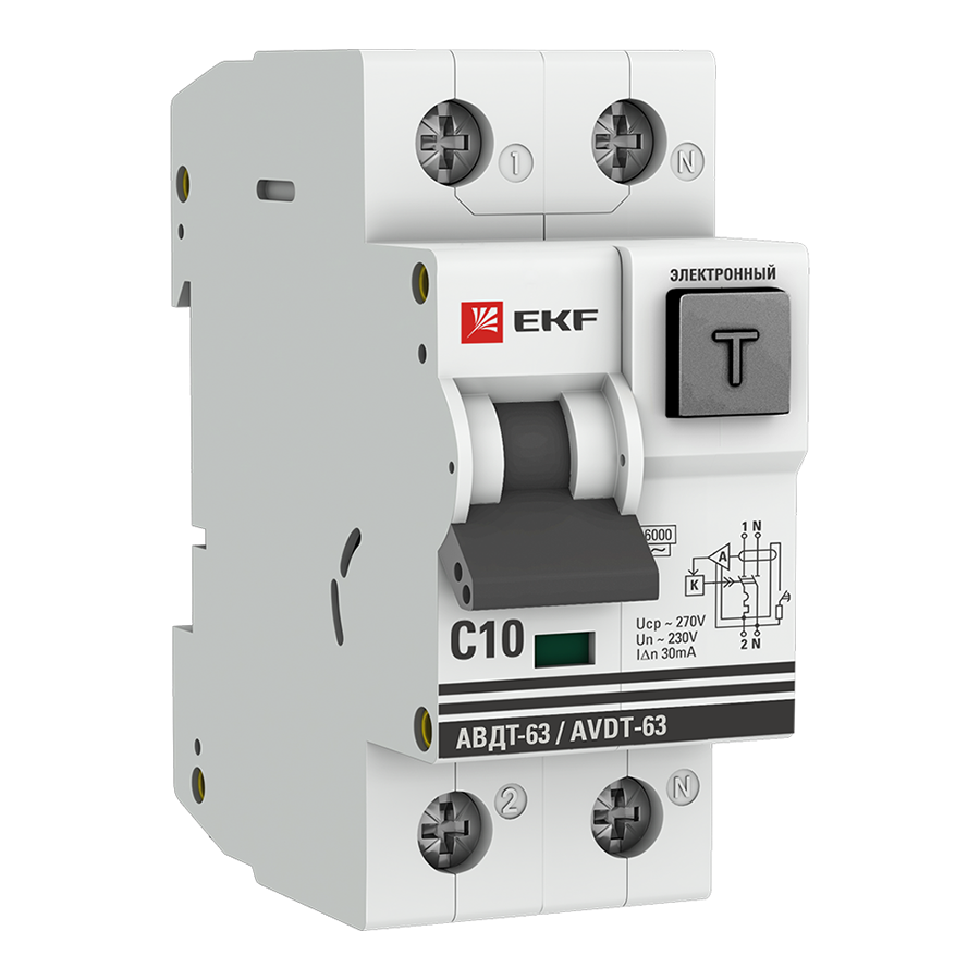 Автоматический выключатель дифференциального тока АВДТ-63 EKF PROxima представляет аппарат, сочетающий функции автоматического выключателя с электромеханическим или электронным УЗО. При обнаружении автоматическим выключателем в защищаемом участке сети тока утечки (повреждения) на землю или сверхтока (тока перегрузки или короткого замыкания) происходит срабатывание устройства, приводящее к отключению защищаемой сети. Возможна коммутация алюминиевым и медным проводником.
