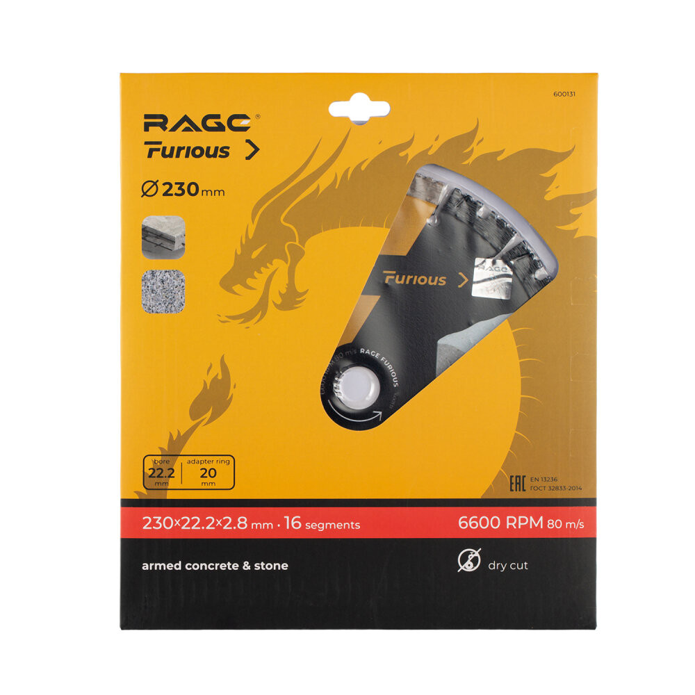 Полное описание товара Диск алмазный 230 мм сегментированный по железобетону и камню (Rage Furious) 600131