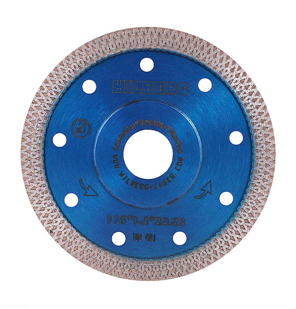 - Комплектация: диск алмазный отрезной 115*22,23 Hilberg Турбо ультратонкий х-тип HM401