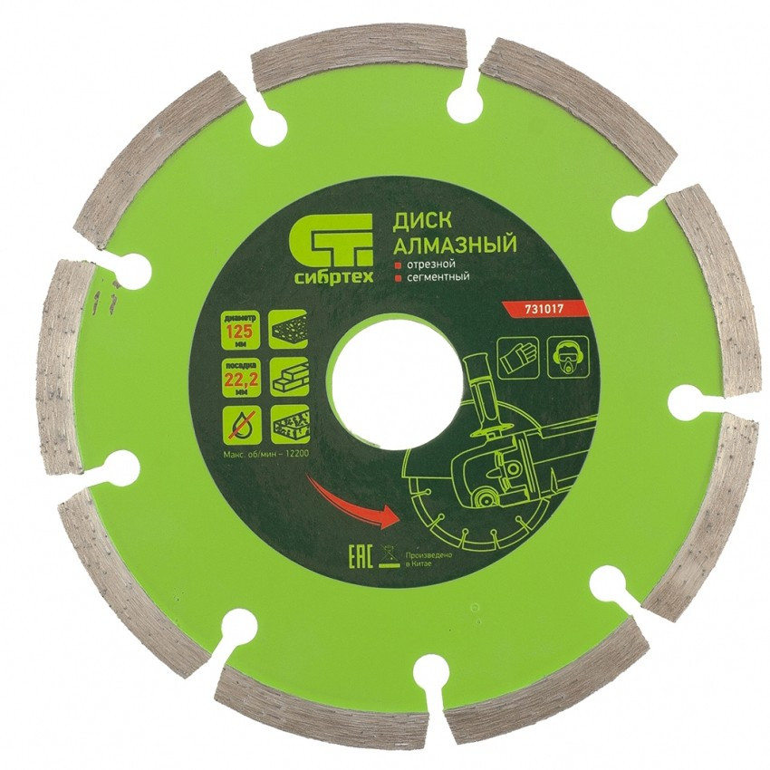 Полное описание товара Диск алмазный отрезной сегментный, 125 х 22,2 мм, сухая резка (СИБРТЕХ) 731017