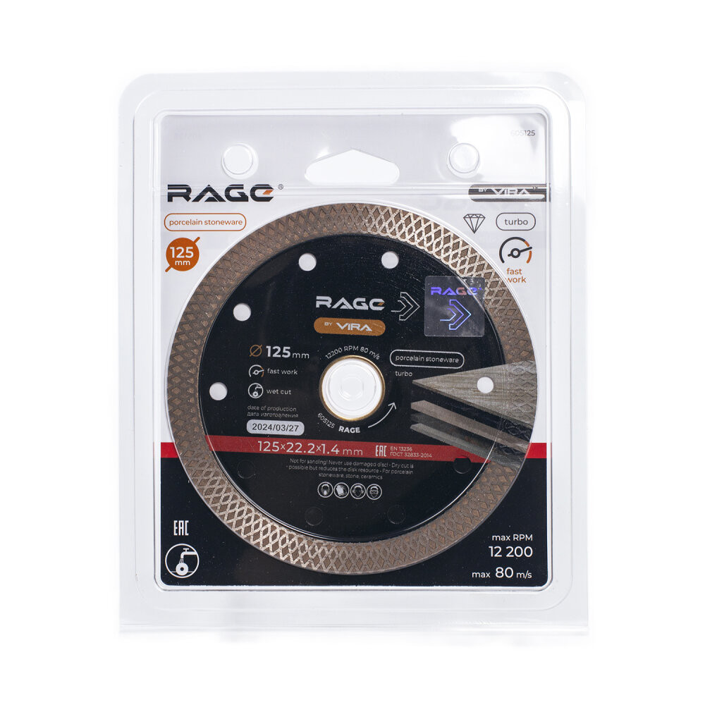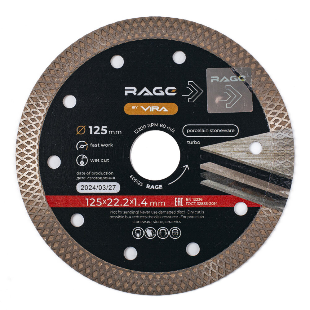 Диск алмазный по керамограниту тонкий 125 x 1.4 x 22.2 мм (Rage) 605125