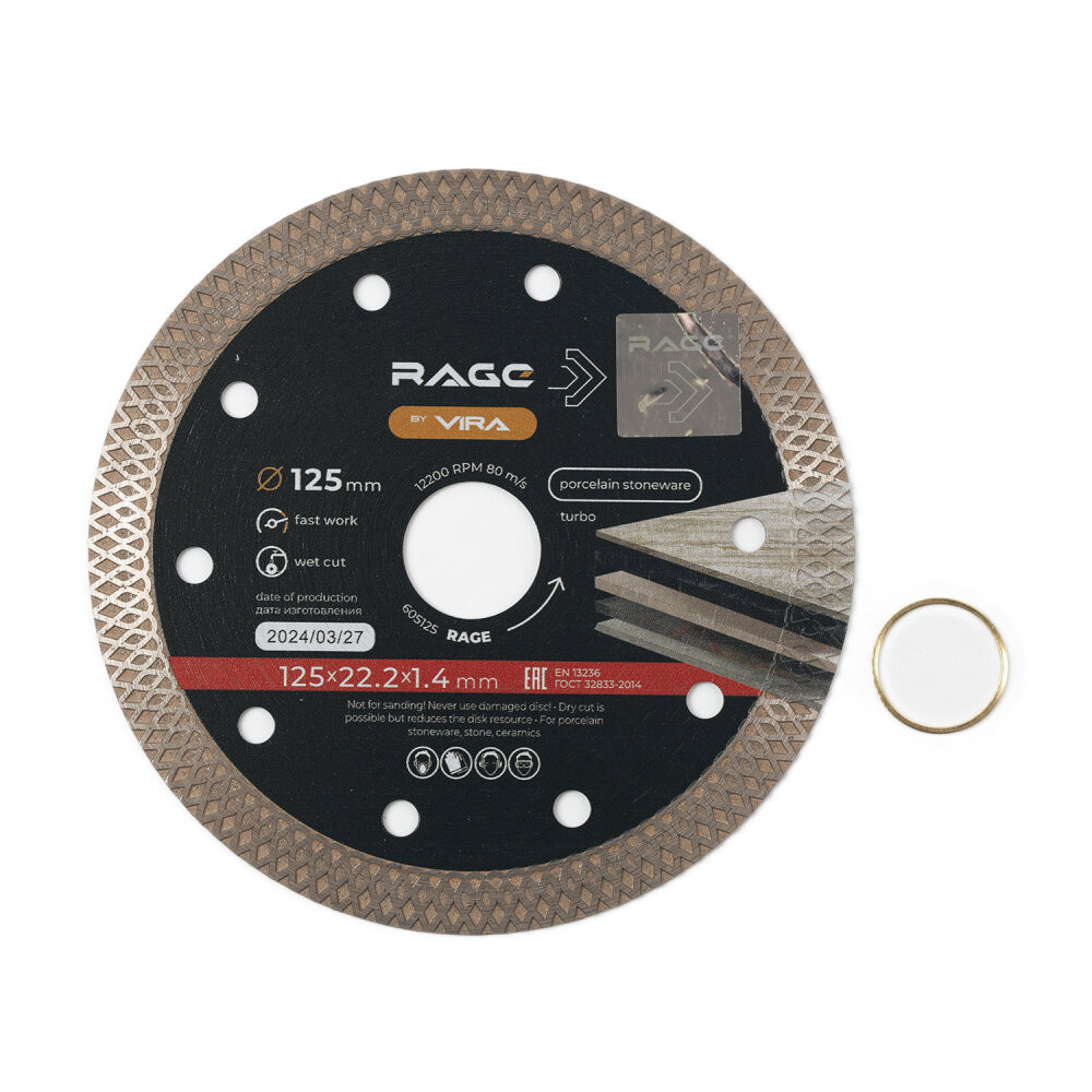 Полное описание товара Диск алмазный по керамограниту тонкий 125 x 1.4 x 22.2 мм (Rage) 605125