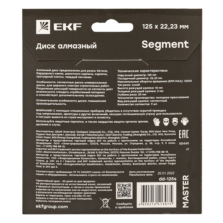 Полное описание товара Диск алмазный Segment (125х22.23 мм) Master (EKF) dd-125s