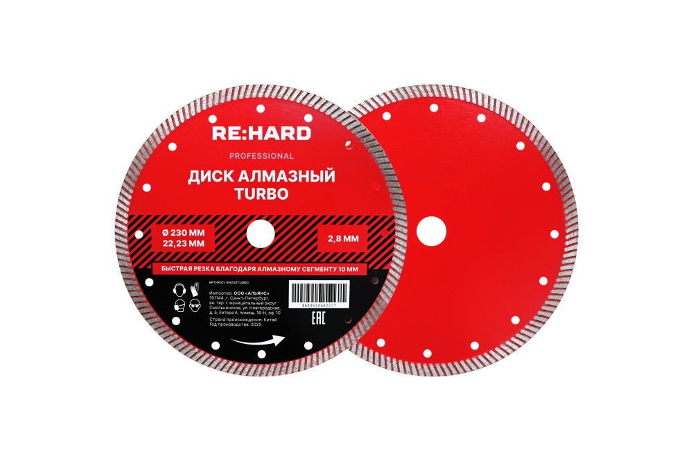 Полное описание товара Диск алмазный Turbo 230х2.8х22.23 мм (RE:HARD) RH230TURBO