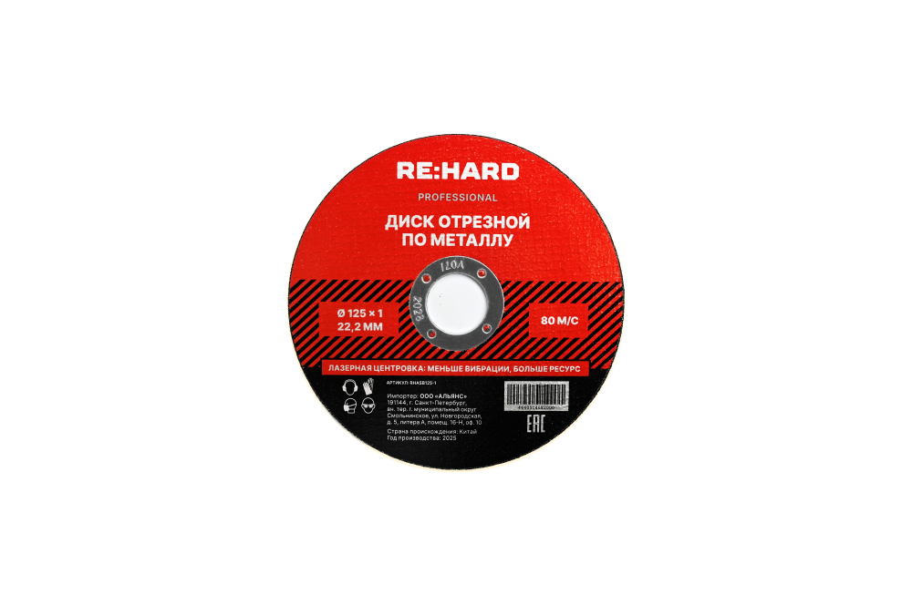 Полное описание товара Диск отрезной абразивный по металлу 125х1х22.2 мм (RE:HARD) RHASB125-1