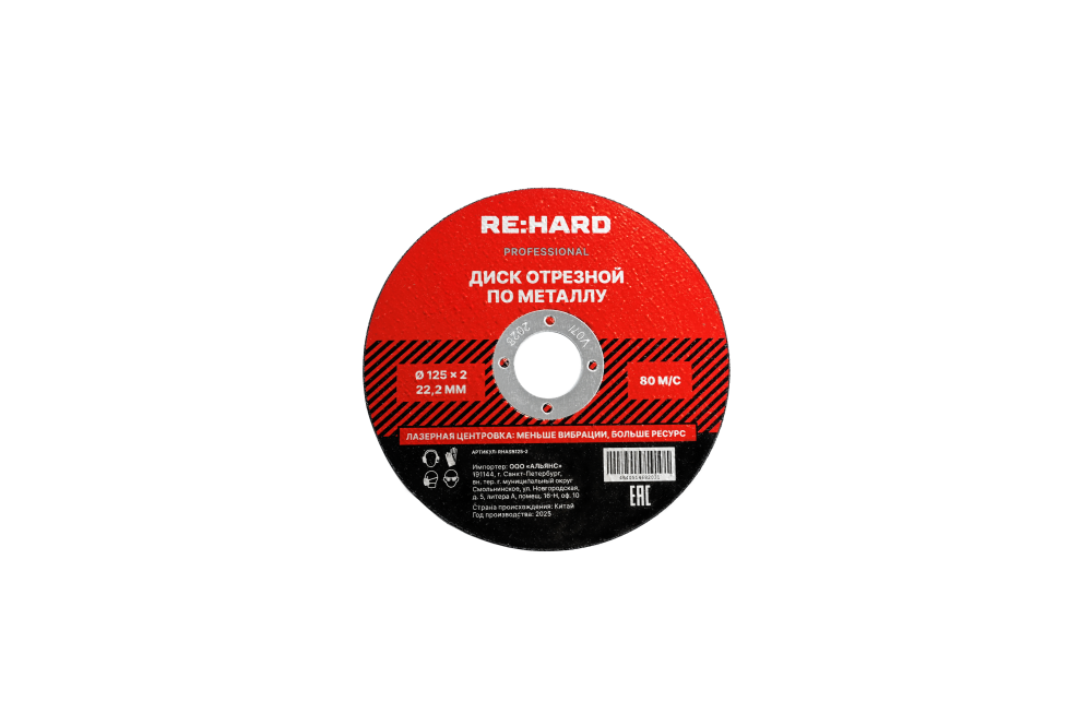 Полное описание товара Диск отрезной абразивный по металлу 125х2х22.2 мм (RE:HARD) RHASB125-2