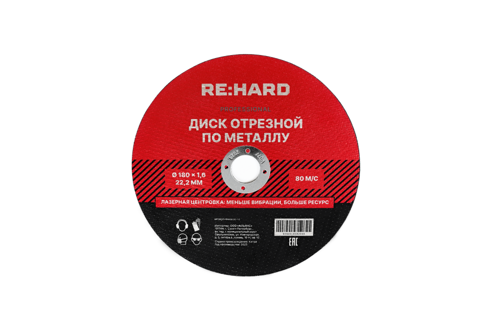 Полное описание товара Диск отрезной абразивный по металлу 180х1.6х22.2 мм (RE:HARD) RHASB180-1.6