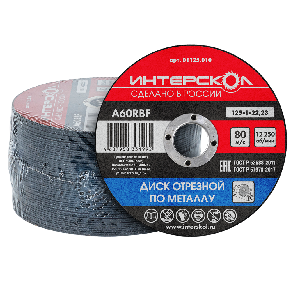 Полное описание товара Диск отрезной по металлу 125х22,2х1 (Интерскол) 01125.010
