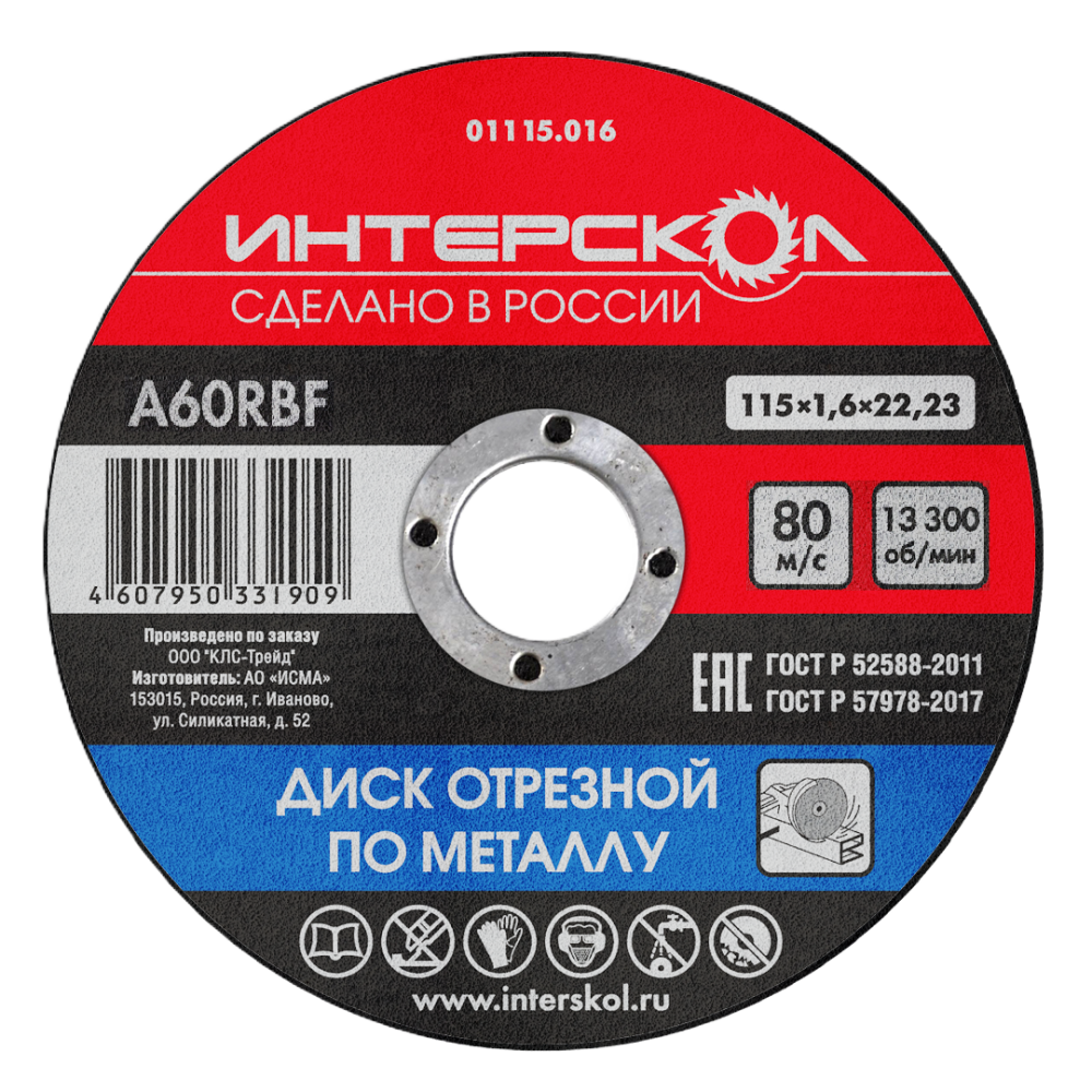 Полное описание товара Диск отрезной по металлу 125х22,2х1,6 (Интерскол) 01125.016