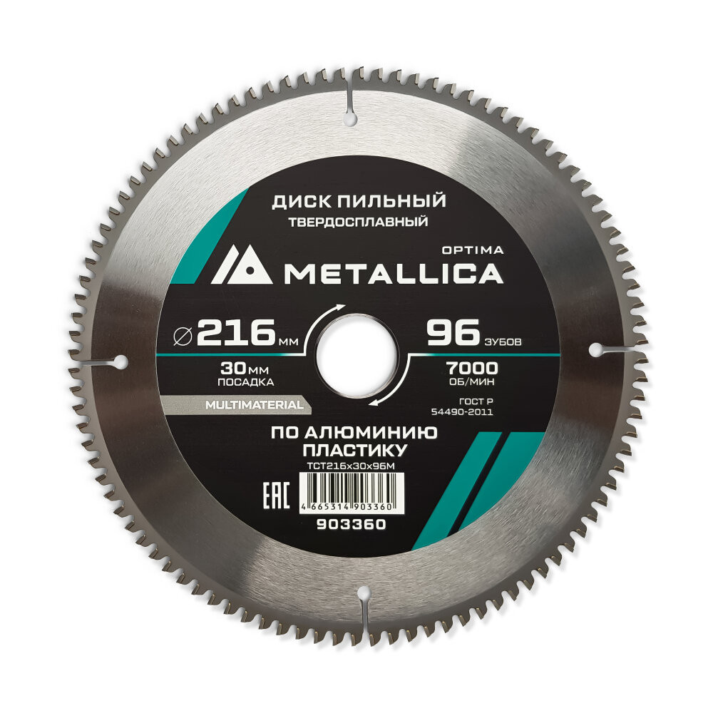 Диск пильный тв. сплав. 216х30 мм, 96 зубов, Т=2,6 мм по алюминию, пластику (METALLICA) 903360