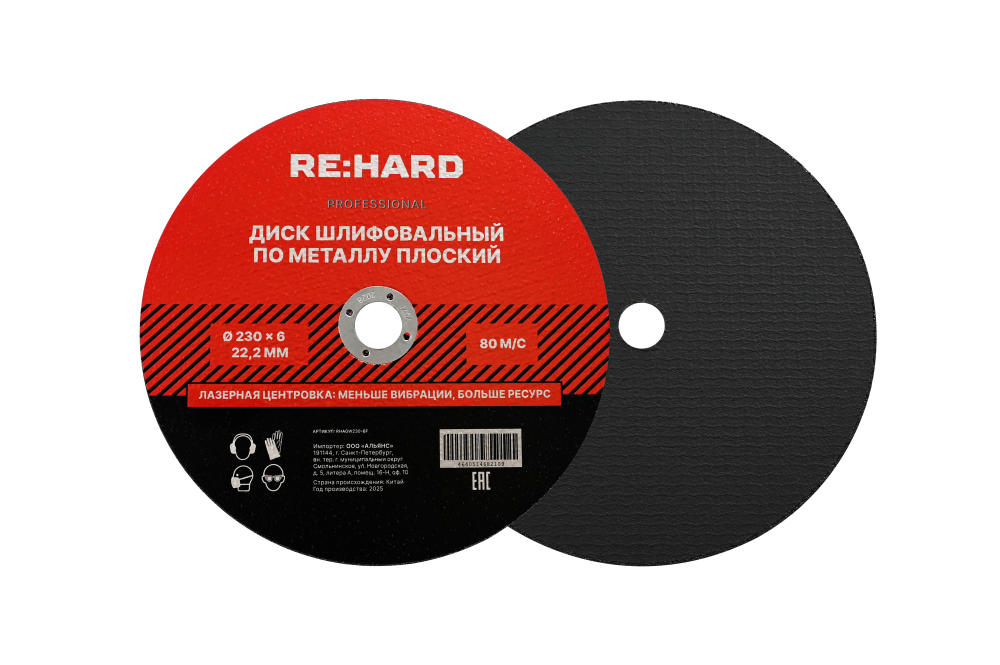 Полное описание товара Диск шлифовальный абразивный по металлу 230х6х22.2 плоский (RE:HARD) RHAGW230-6F