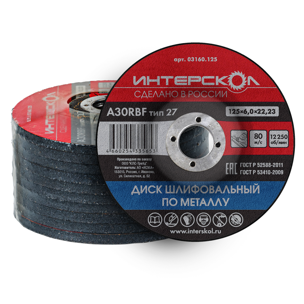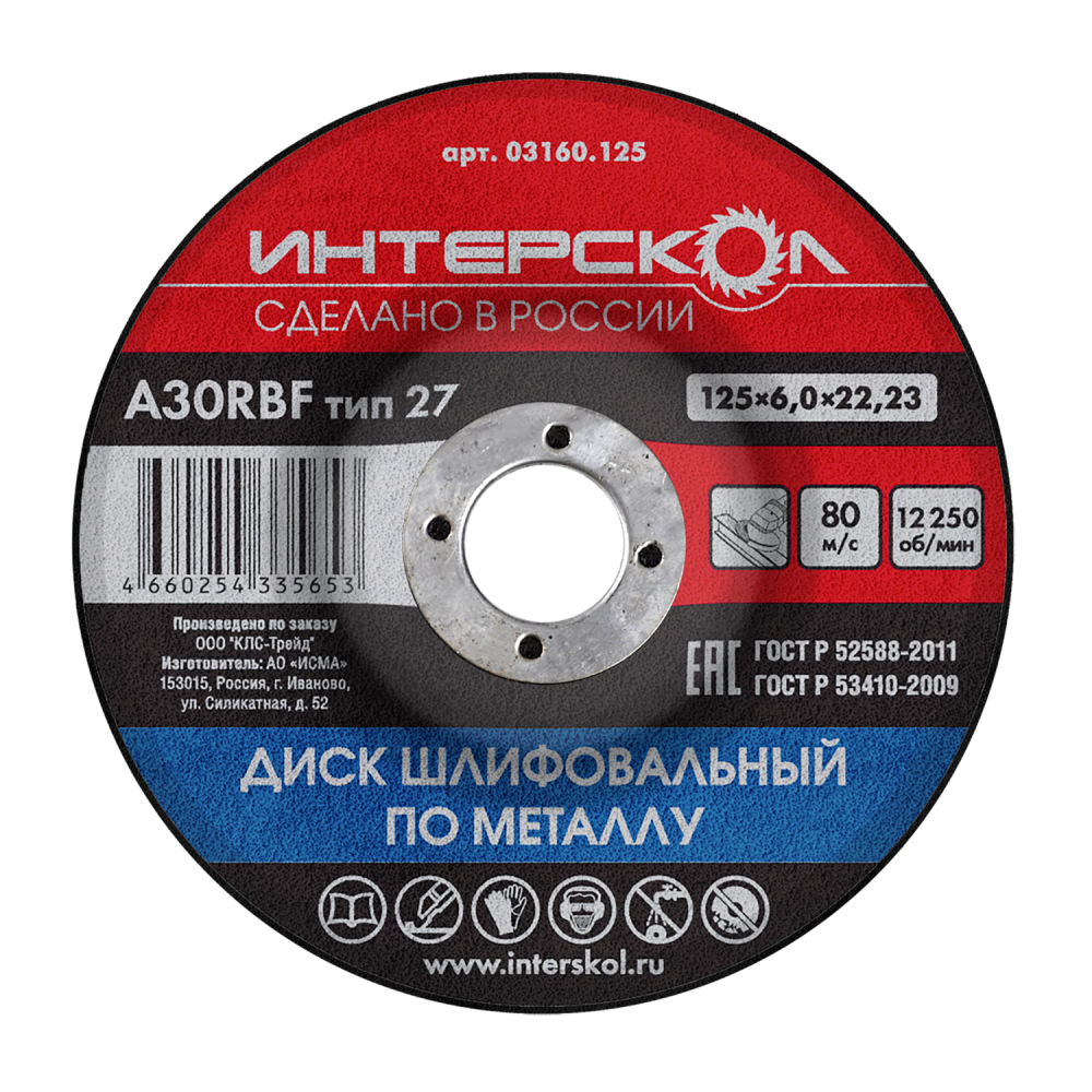 Полное описание товара Диск шлифовальный по металлу 125х6х22,23 (Интерскол) 03160.125