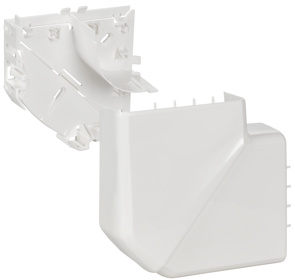 Плоский угол предназначен для соединения двух кабель-каналов одинакового сечения под плоским углом 85–95°. Позволяет избежать разрезания кабель-канала под острым углом, обеспечивает степень защиты IP40, улучшает внешний вид и скрывает место разреза. Угол защёлкивается на корпус кабель-канала. Допускается установка на кабель-каналы с разделительными/несущими перегородками или без них. Цвет: белый