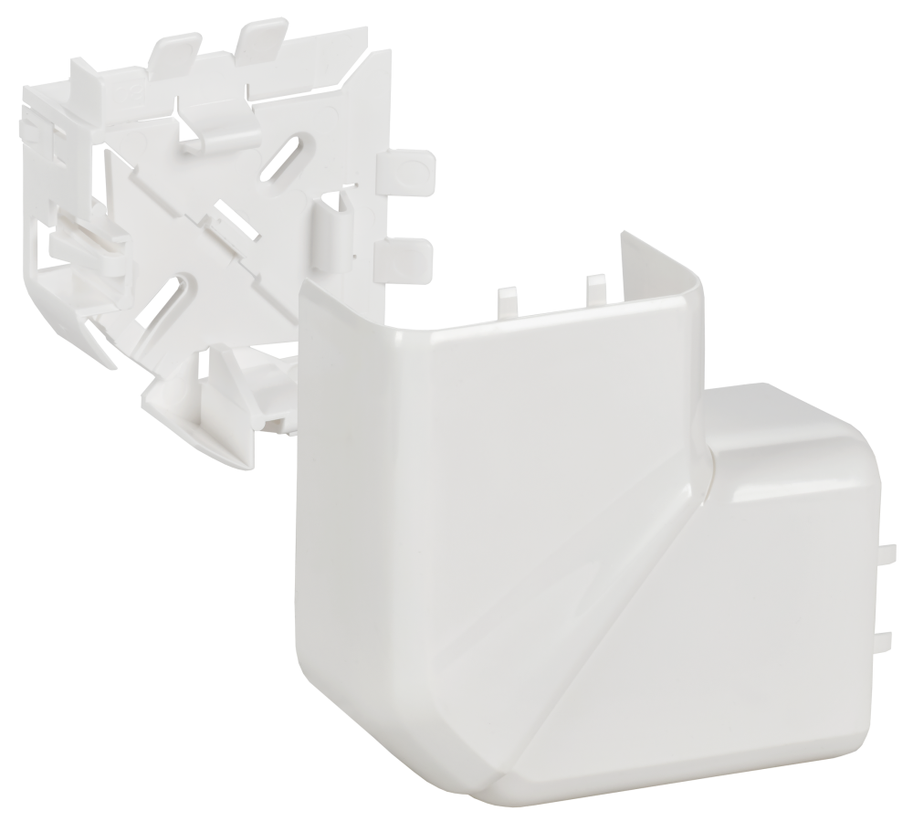 Плоский угол предназначен для соединения двух кабель-каналов одинакового сечения под плоским углом 85–95°. Позволяет избежать разрезания кабель-канала под острым углом, обеспечивает степень защиты IP40, улучшает внешний вид и скрывает место разреза. Угол защёлкивается на корпус кабель-канала. Допускается установка на кабель-каналы с разделительными/несущими перегородками или без них. Цвет: белый