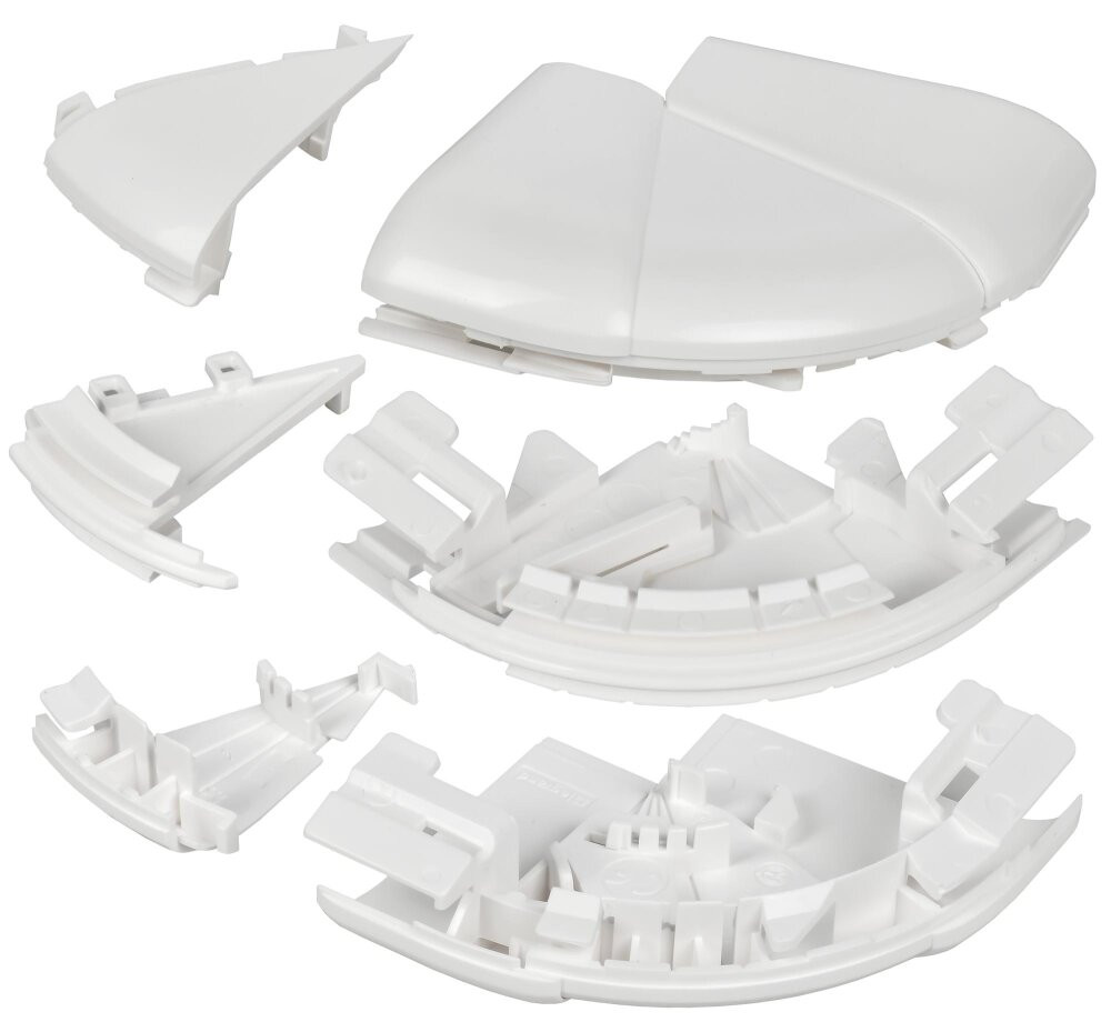 Угол внешний изменяемый предназначен для соединения двух кабель-каналов одинакового сечения под внешним углом 60-120 град., позволяет не разрезать кабель-канал под острым углом, обеспечить заявленную степень защиты IP40, улучшает внешний вид, скрывает место разреза без излишнего утолщения кабельной трассы. Угол включает в себя 2 элемента - для верхней и нижней частей кабель-канала, между которыми защелкивается крышка. Цвет: белый