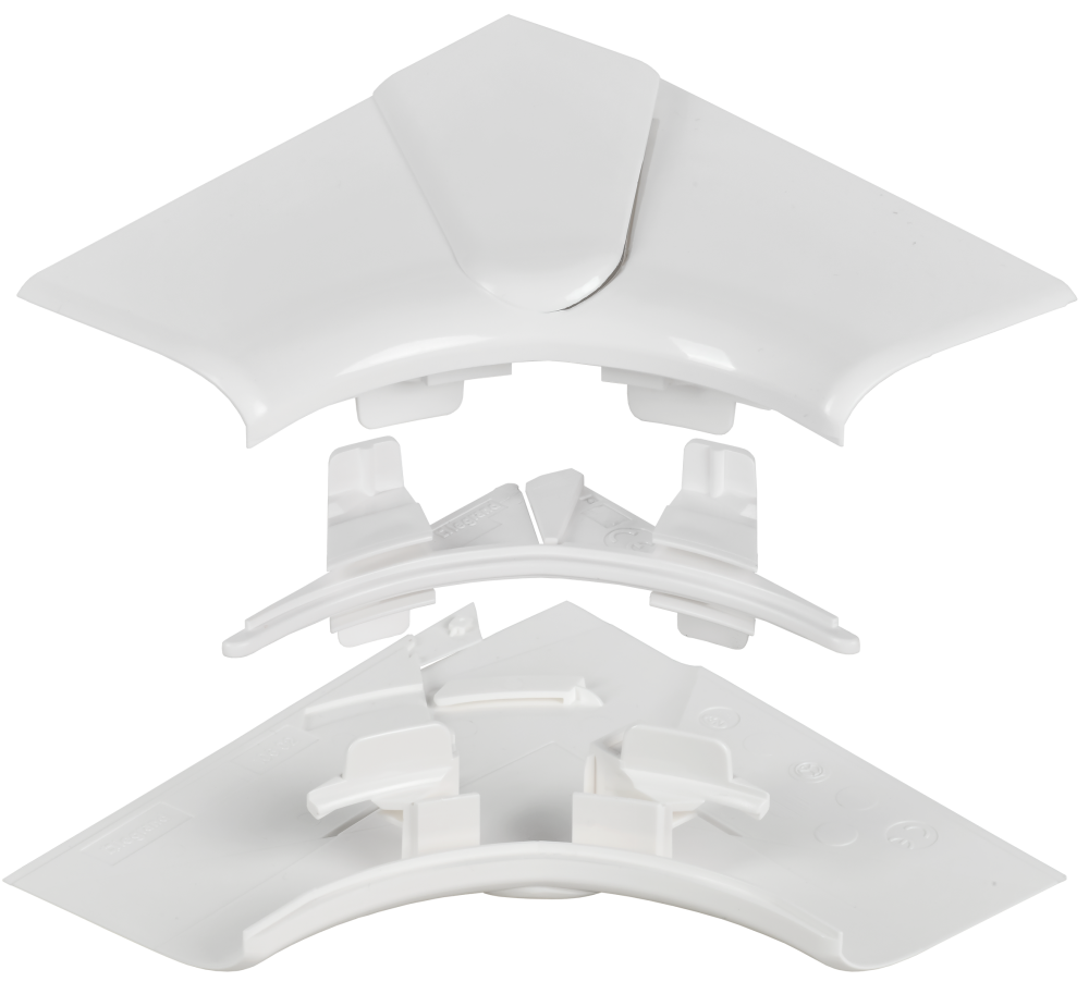 Угол внутренний изменяемый предназначен для соединения двух кабель-каналов одинакового сечения под внутренним углом 80–100°. Позволяет не разрезать кабель-канал под острым углом, обеспечивает степень защиты IP40, улучшает внешний вид и скрывает место разреза без излишнего утолщения кабельной трассы. Угол состоит из двух элементов — для верхней и нижней частей кабель-канала, между которыми защёлкивается крышка. Цвет: белый.