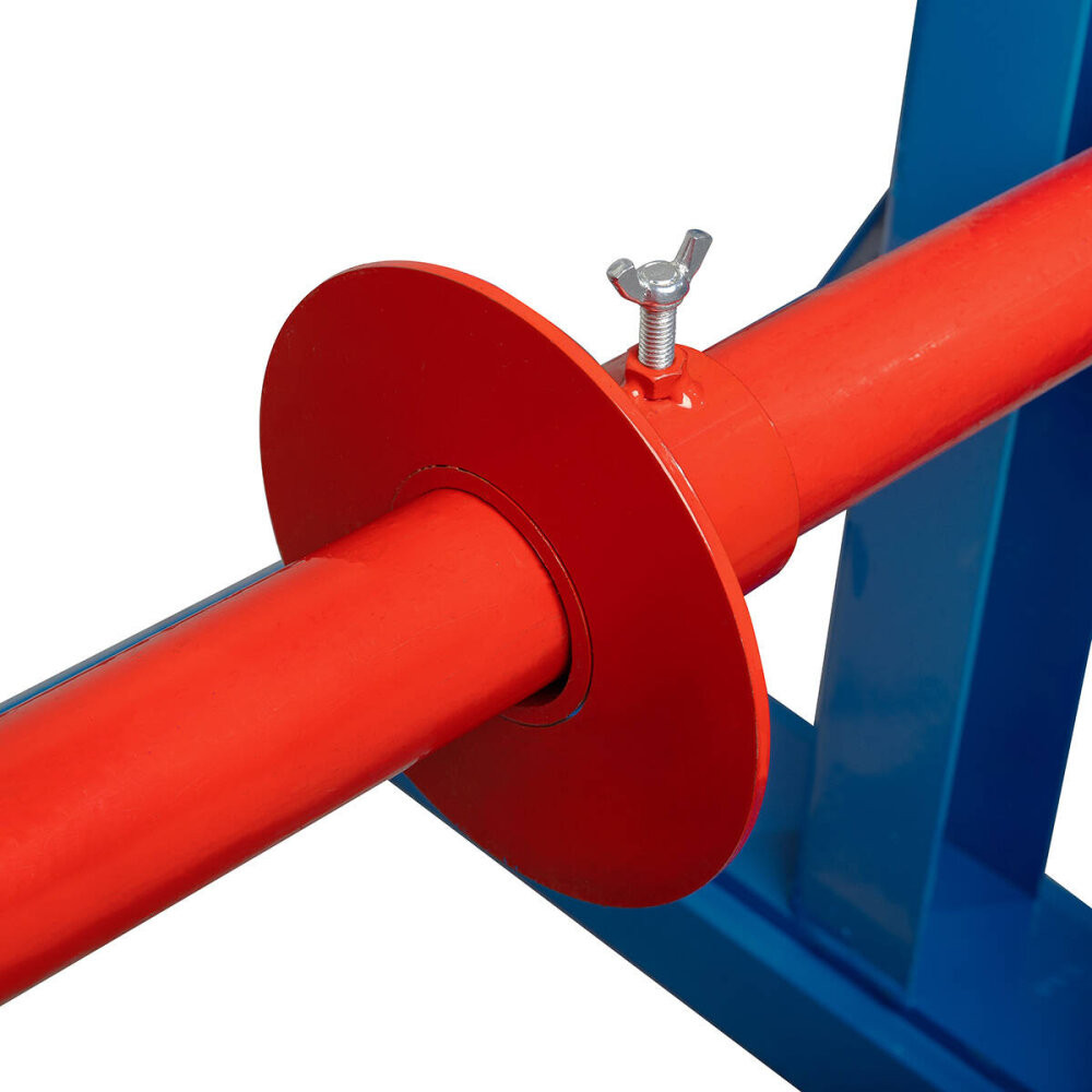 - Ось домкрата выполнена из цельнометаллического прутка и оснащена прижимными башмаками для предотвращения перемещения барабана по валу во время размотки кабеля