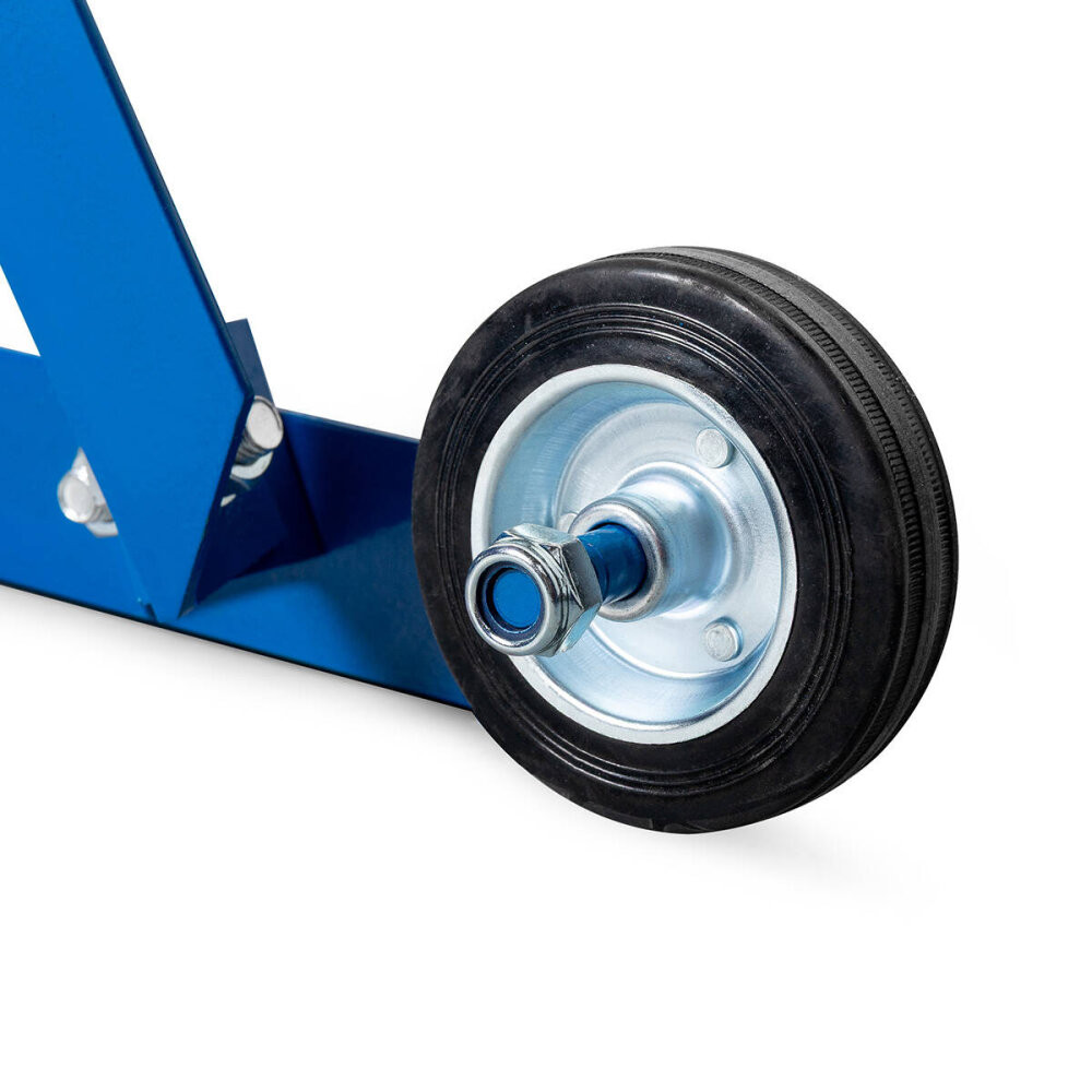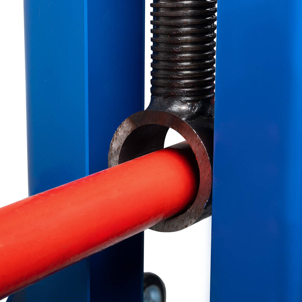 - Колеса установленные в основании конструкции и рукоятки на стойках домкрата позволяют с легкостью перемещать оборудование по рабочей площадке