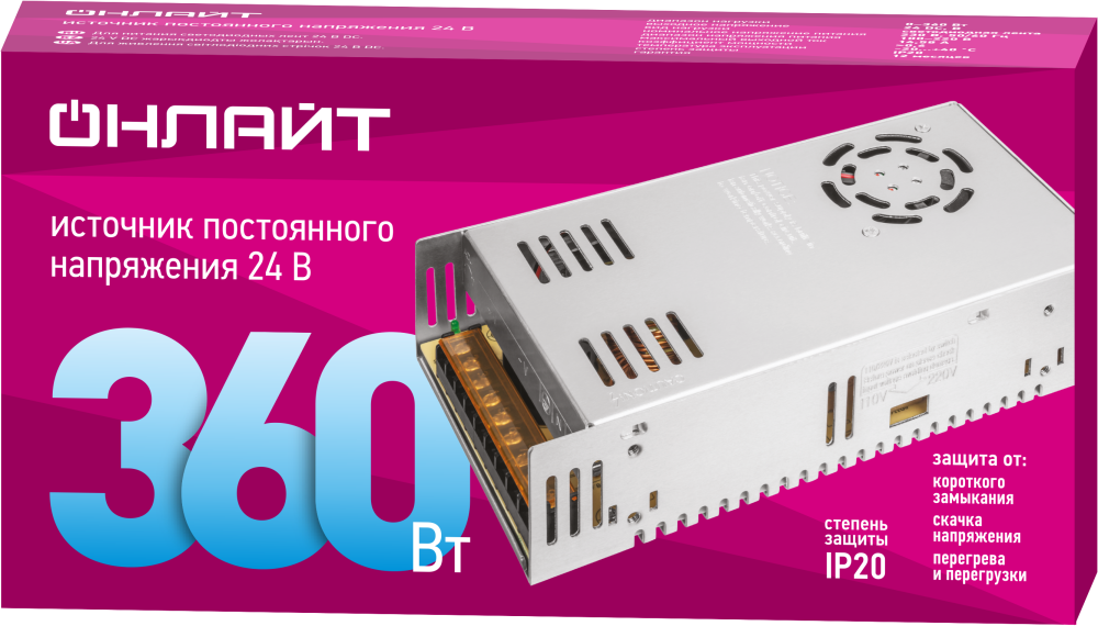 Полное описание товара Драйвер 360w OD-P360-IP20-24V (ОНЛАЙТ) 90646
