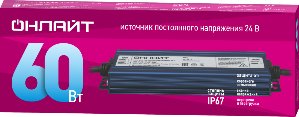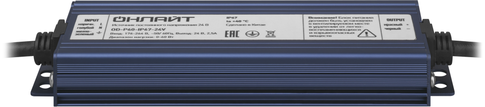 Полное описание товара Драйвер 60w OD-P60-IP67-24V (ОНЛАЙТ) 90650