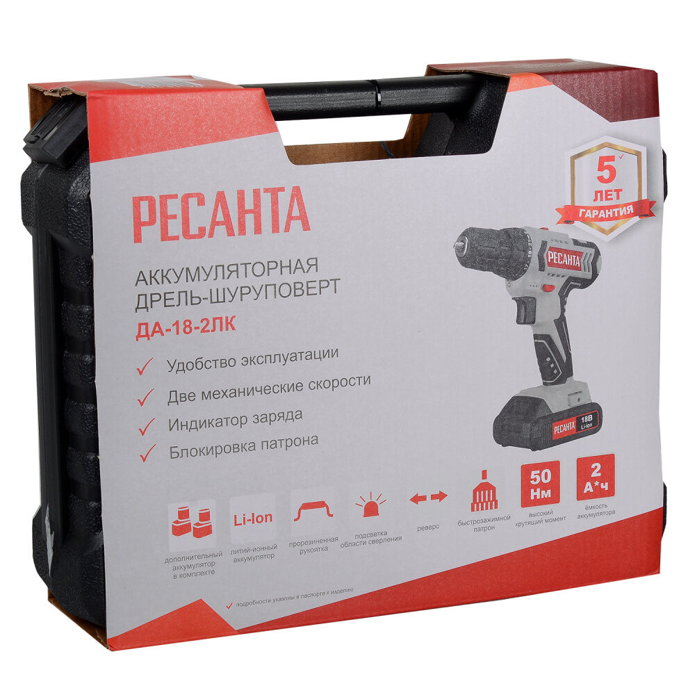 Дрель-шуруповерт аккумуляторная ДА-18-2ЛК (Ресанта) 75/14/5