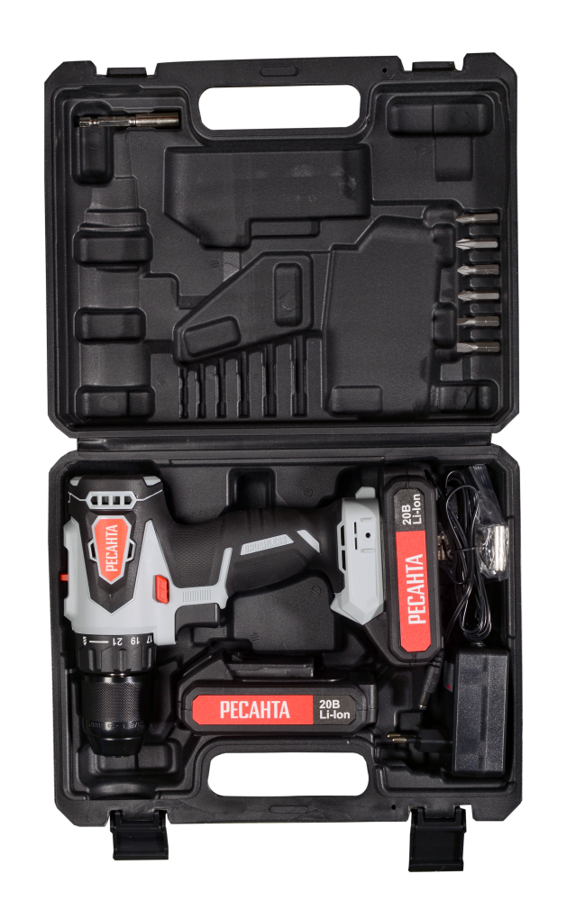 Дрель-шуруповерт аккумуляторная ДА-20-2ЛК-Б (2.0 А/ч) (Ресанта) 75/14/10