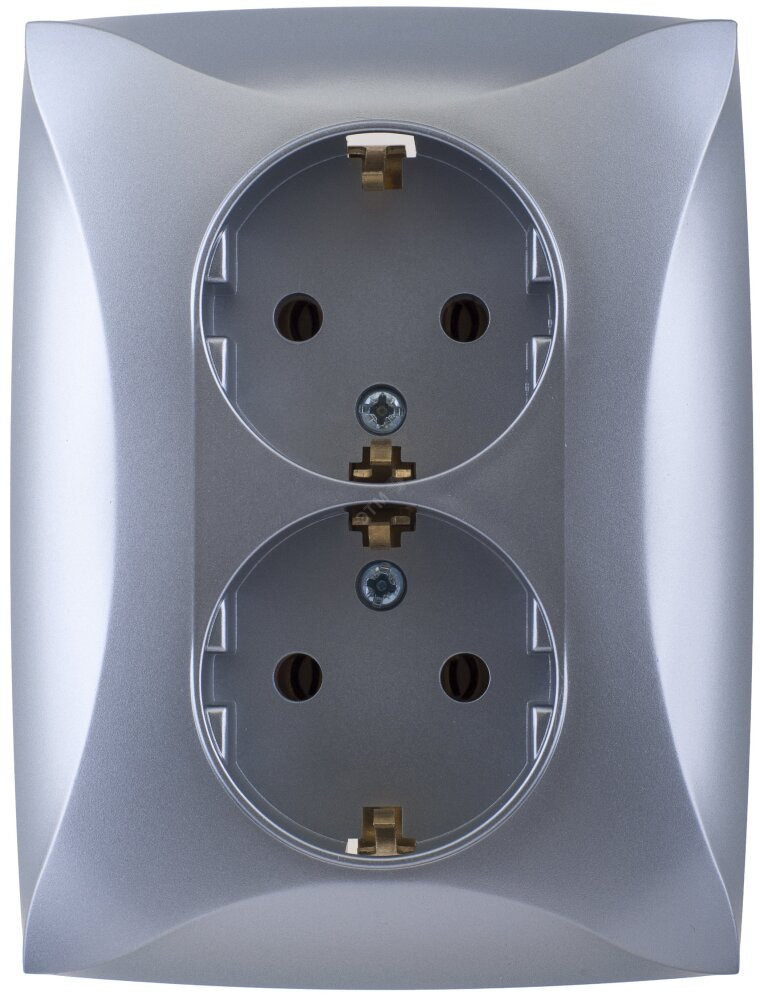 ДУЭТ Розетка двойная с заземлением серебро (Schneider Electric) WDE000324