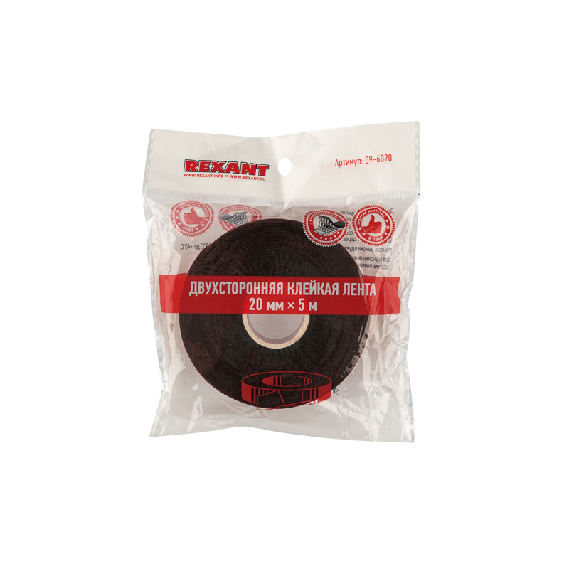 Двухсторонние клейкие ленты 20 мм 5 м ACRYLIC REXANT – революционный продукт на основе материалов от компании 3M, отличающийся очень высокой клейкостью, обладает жесткой акриловой основой, высокой термостойкостью, выдерживает температуру до 130 градусов и имеет широкое применение. Подходит для склеивания материалов с высокой поверхностной энергией (стекло, металл, акриловые полимеры), включая загрунтованное дерево, также широко используется в сфере электроники и автомобильной промышленности. Оптимальная температура для работы с лентой – от +20 до +30 градусов при относительной влажности 50%. В условиях, когда к клейкой ленте прилагаются значительные (близкие к предельным) нагрузки, следует иметь в виду, что величина адгезии достигает максимума примерно через сутки после приклеивания.