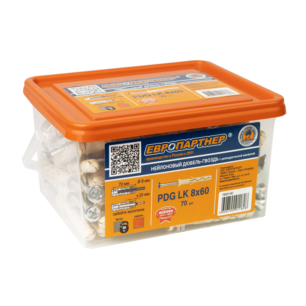 Дюбель-гвоздь с цилиндрической манжетой PDG LK 8x60 (70шт) (Европартнер) 76091182