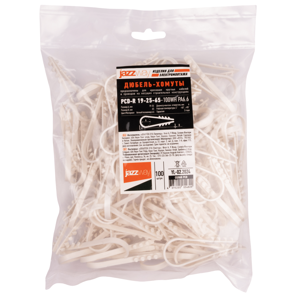 Полное описание товара Дюбель-хомут для круглого кабеля белый 19-25 Jazzway (100 шт/уп) (JazzWay) 5054820