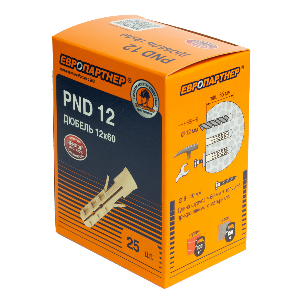 Полное описание товара Дюбель нейлоновый PND-12 12х60мм (25шт) (Европартнер) 76082057