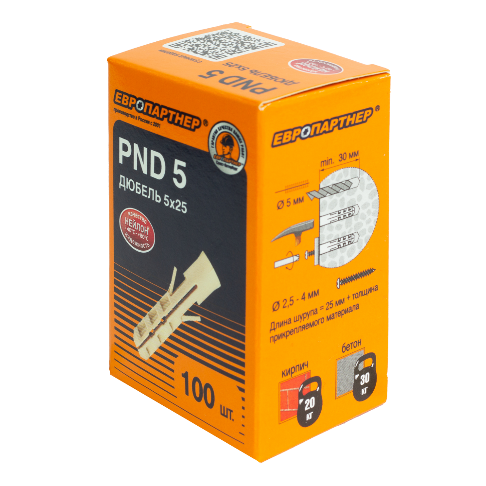 Полное описание товара Дюбель нейлоновый PND-5 5х25мм (100шт) (Европартнер) 76082028