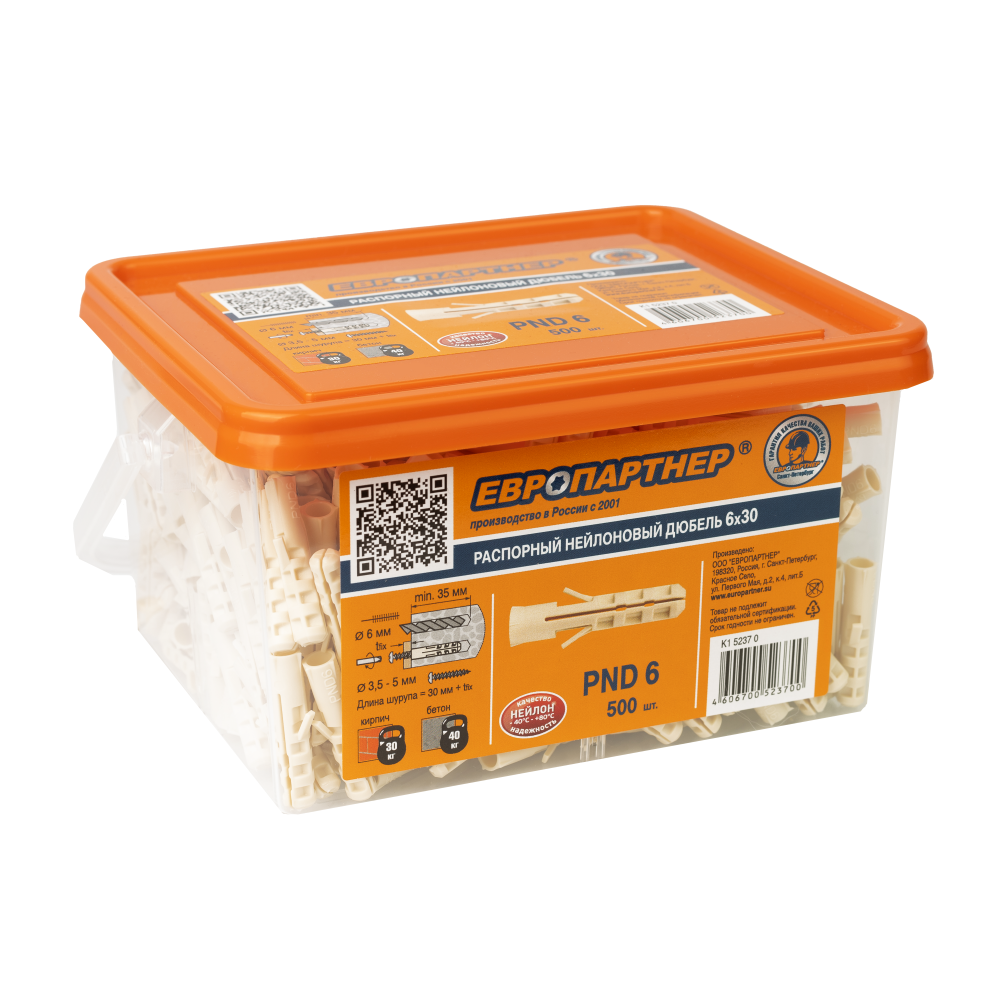 Полное описание товара Дюбель нейлоновый PND-6 6х30мм (500шт) (Европартнер) K1 5237 0