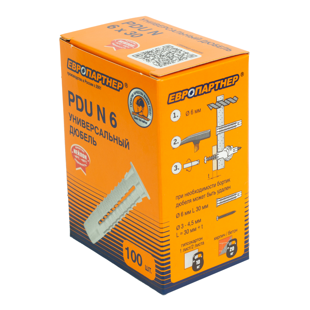 Полное описание товара Дюбель универсальный нейлоновый PDU N 6х30мм (100шт) (Европартнер) 87123