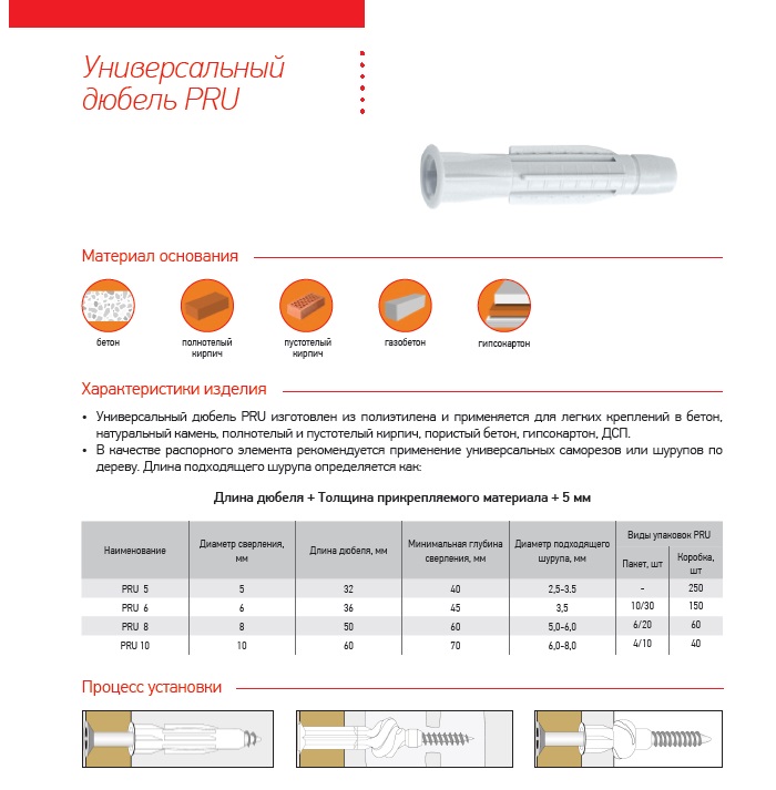 Полное описание товара Дюбель универсальный PRU 5 (250шт) (Партнер) 44950