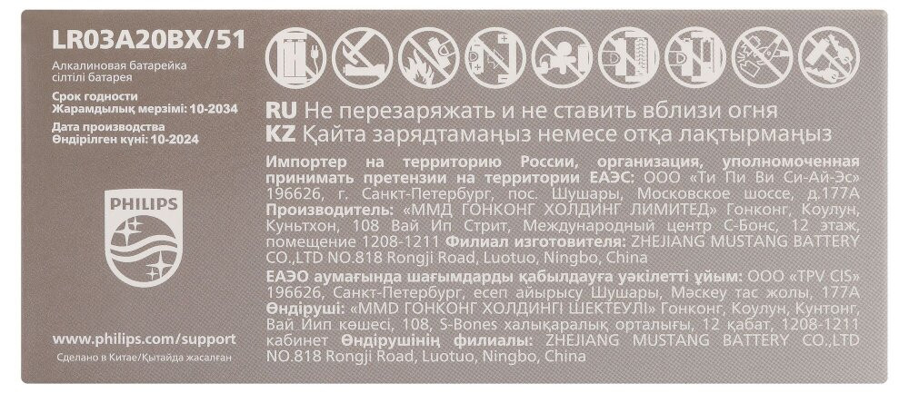 - Преимущества: Отлично подходит для устройств с высоким энергопотреблением|Батарея остается годной для использования в течение 10 лет| Удобство использования|Понятные схематические инструкции по эксплуатации|Щелочные батареи Philips не содержат кадмия, ртути и свинца