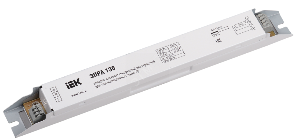 Полное описание товара ЭПРА 136 для линейных ЛЛ Т8 (IEK) LLV136D-EBFL-1-36