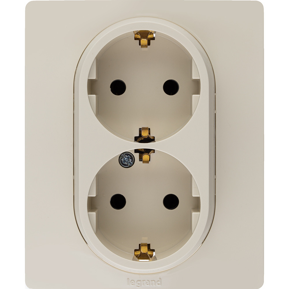 Двойная розетка с заземлением ETIKA для скрытого монтажа. Максимальный ток 16 А, максимальная мощность 3680 Вт. Применяется в зданиях, оборудованных для повышения безопасности проводкой с заземлением (с защитным проводником). Позволяет компактно разместить две розетки, используя одно место установки.