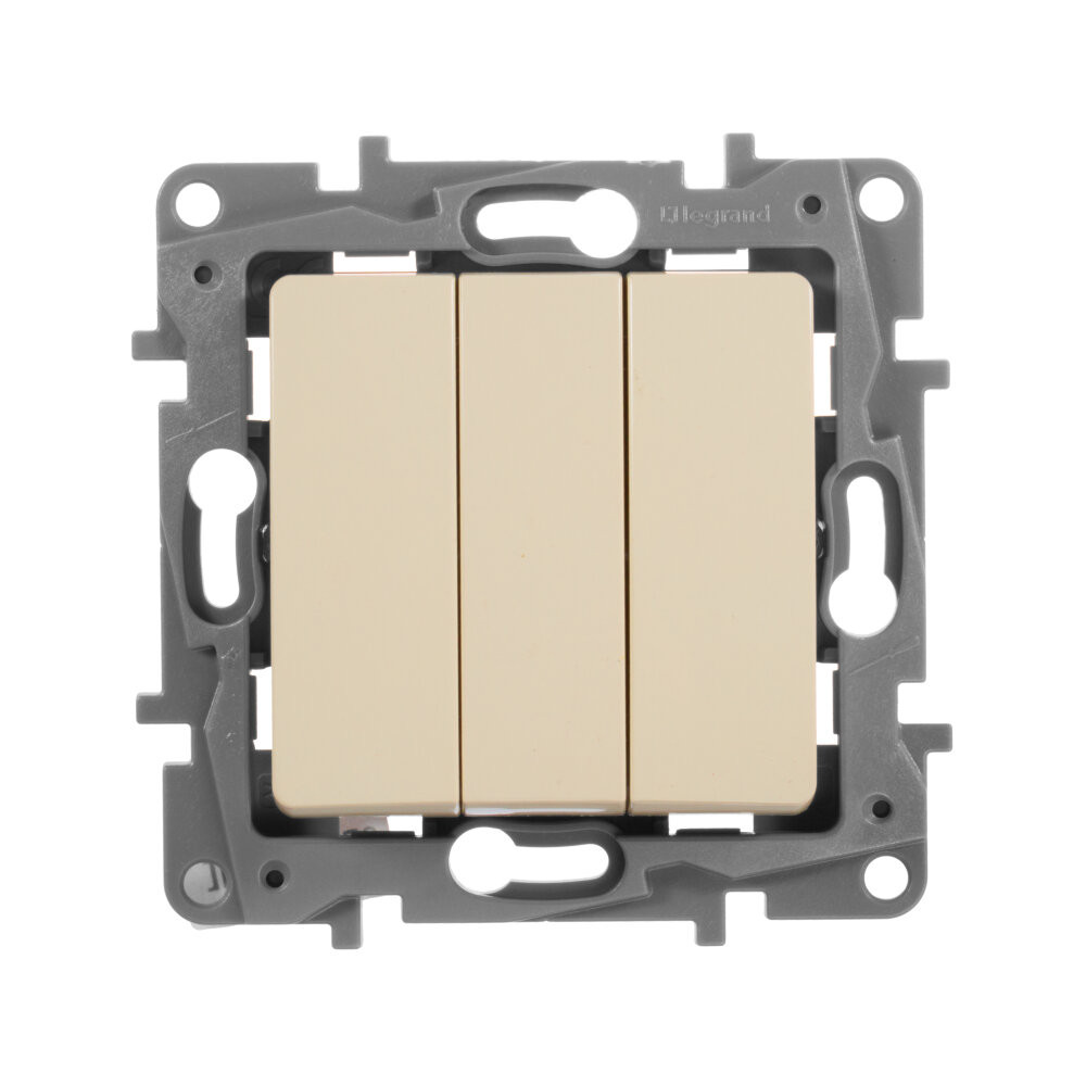 ETIKA Выключатель трехклавишный слоновая кость 10АХ (Legrand/Daccord) 672313