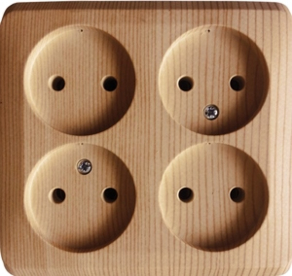 ЭТЮД Розетка четырехместная наружная без заземления без шторок 16А 250B сосна (Systeme Electric) PA16-205D
